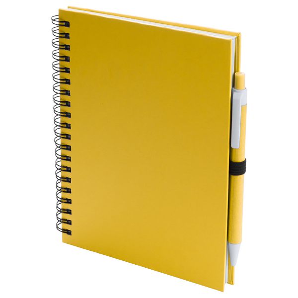 Carton covered spiral notebook with 70 blank sheets, and matching colour recycled paper ballpoint pen with blue refill, A5.Veličina proizvoda:
