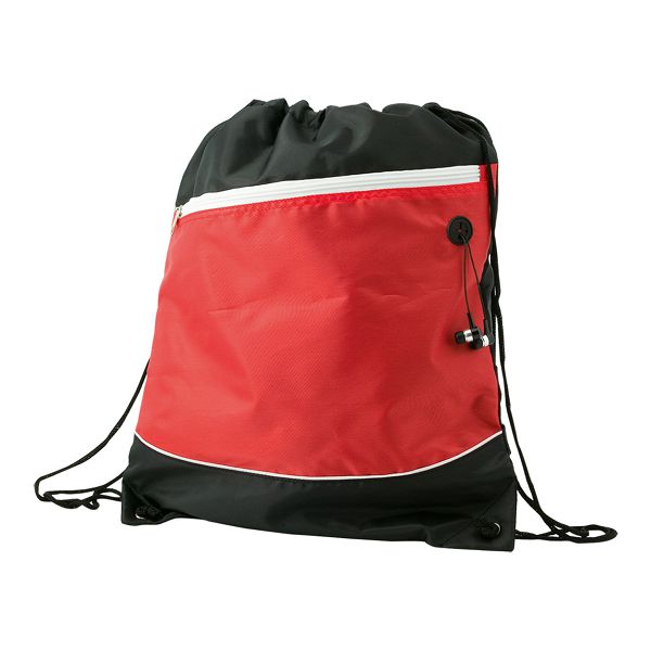 210T polyester drawstring bag with extra zipped pockets and earphone outlet.Veličina proizvoda: