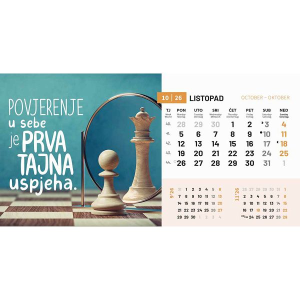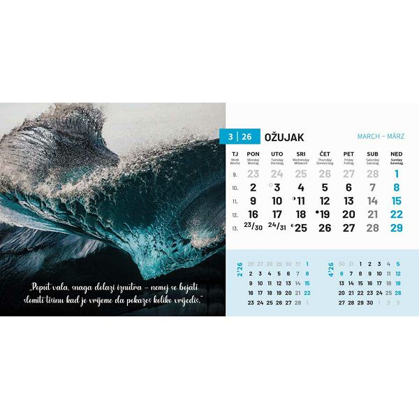 Stolni kalendar MOTIVACIJSKI za 2026. – 13 listova, 20,5x14,5 cm